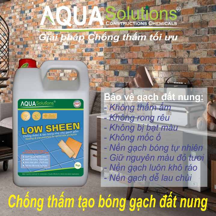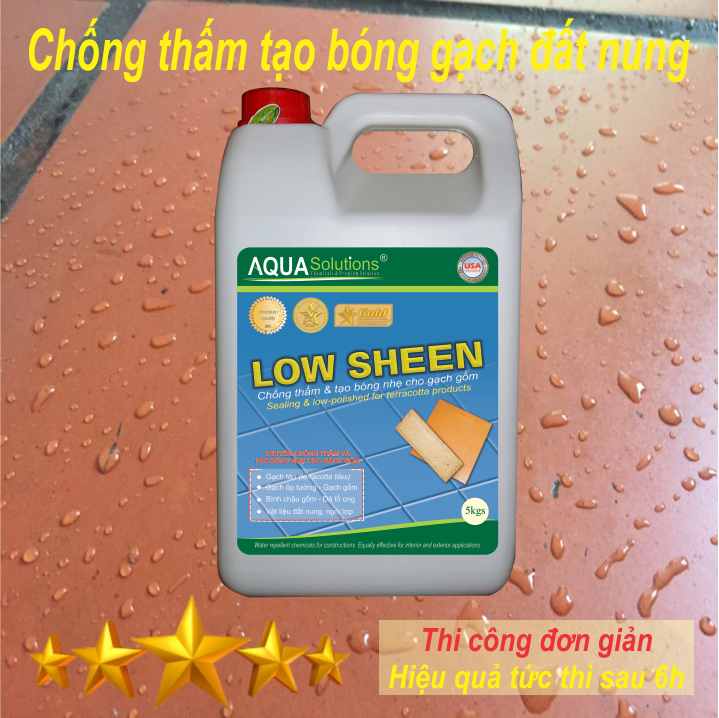 Chống thấm tạo bóng nhẹ LOW SHEEN chuyên dùng chống thấm và tạo bóng nhẹ cho các loại vật liệu đất nung. Chống thấm tạo bóng nhẹ LOW SHEEN được dùng để xử lý kháng nước cho các vật liệu có độ xốp cao. Các ứng dụng tiêu biểu cho vật liệu như: